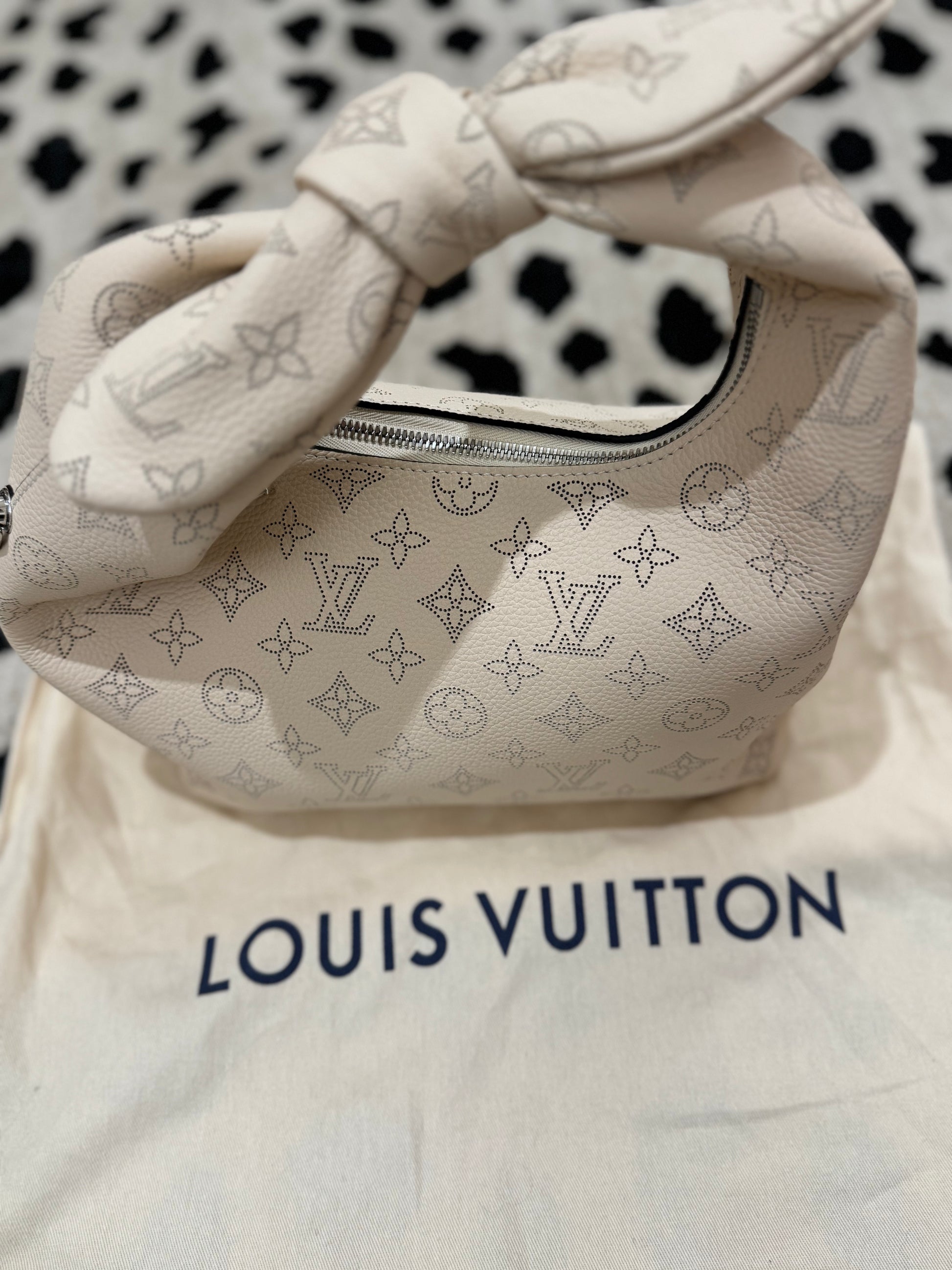 This Louis Vuitton hobo bag balances versatility and statement style. Its neutral beige shade pairs seamlessly with any outfit, while the knotted handle adds a fashion-forward twist. Perfect for daily wear or travel, it’s a go-to bag that keeps your essentials stylishly close.